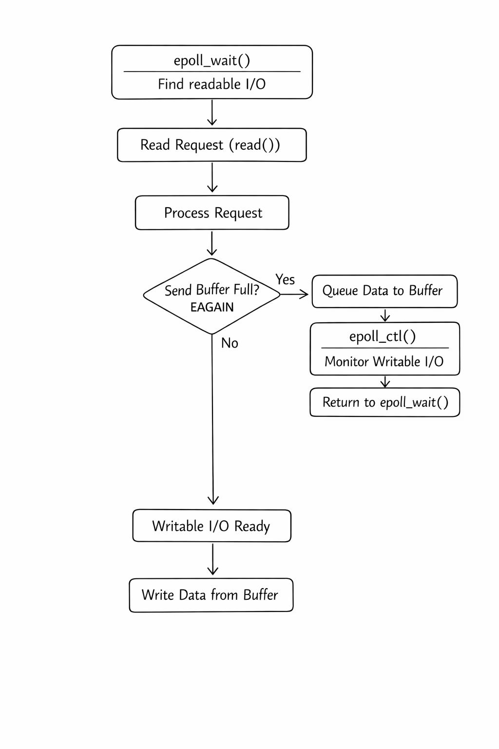 處理完請求後,執行 write() ,若 kernel 的 send buffer 已滿,non-blocking write() 會返回 error